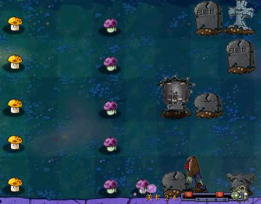 常见失败原因:夜晚没有阳光掉落,没有合理的利用向日葵和免费的小喷菇。被门板僵尸和撑杆跳突破阵地。