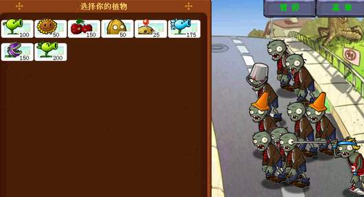 第九关没有出现新的僵尸 ,还是这四种僵尸的组合,有了双发射手这个僵尸组合毫无难度。这一关第一次可以选卡,每次选择的卡片数限制是1-10张,是的,安装版的植物大战僵尸中规定了一个限制的张数,但是这个版本没有,你甚至可以只选择一张植物卡片,只要你觉得你能过。玩法老套路,开局向日葵,土豆雷。